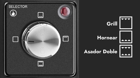 3 FUNCIONES PARA HORNEAR. Grill (carnes, pescados y gratinar), Hornear (queques, carnes, pizzas, etc.) y Asador Doble (asar pollo, cerdo o vacuno).
