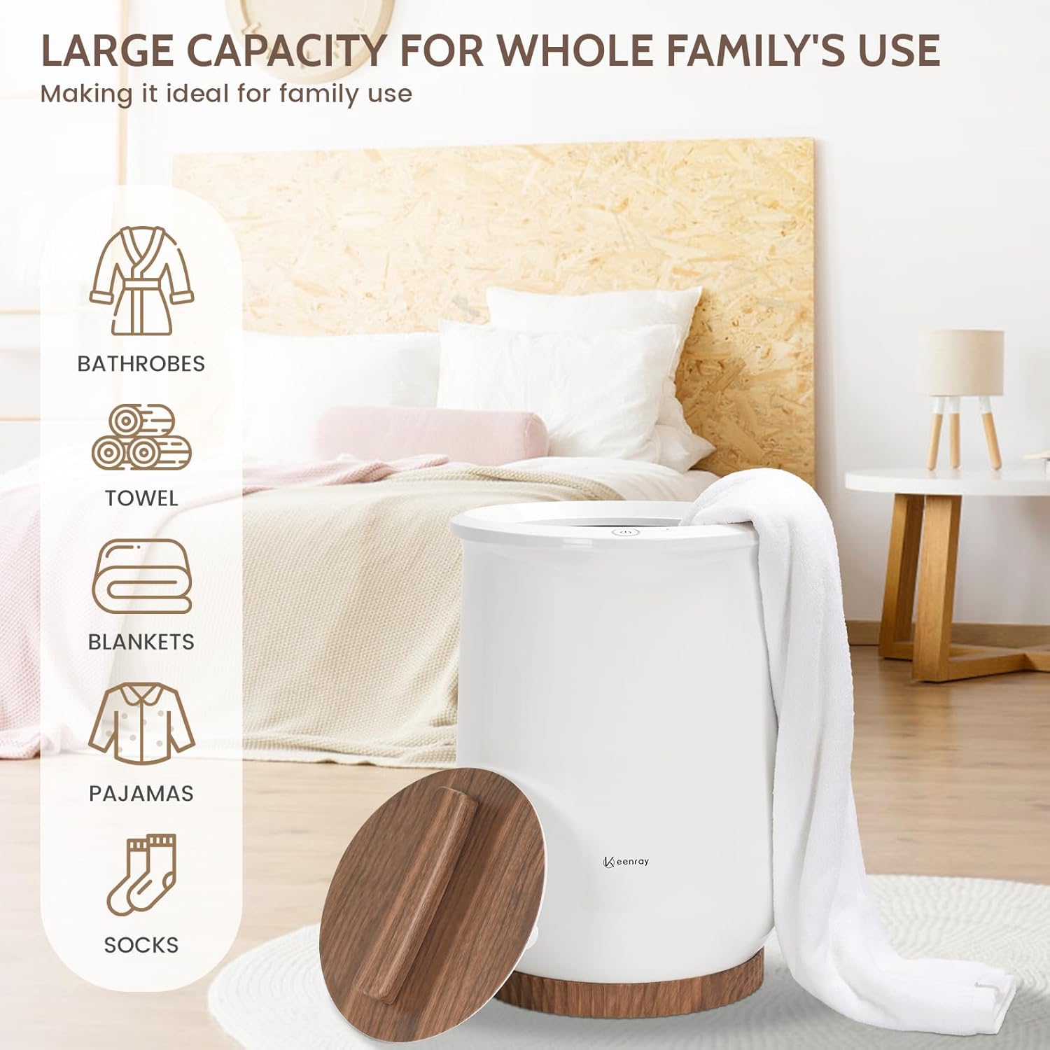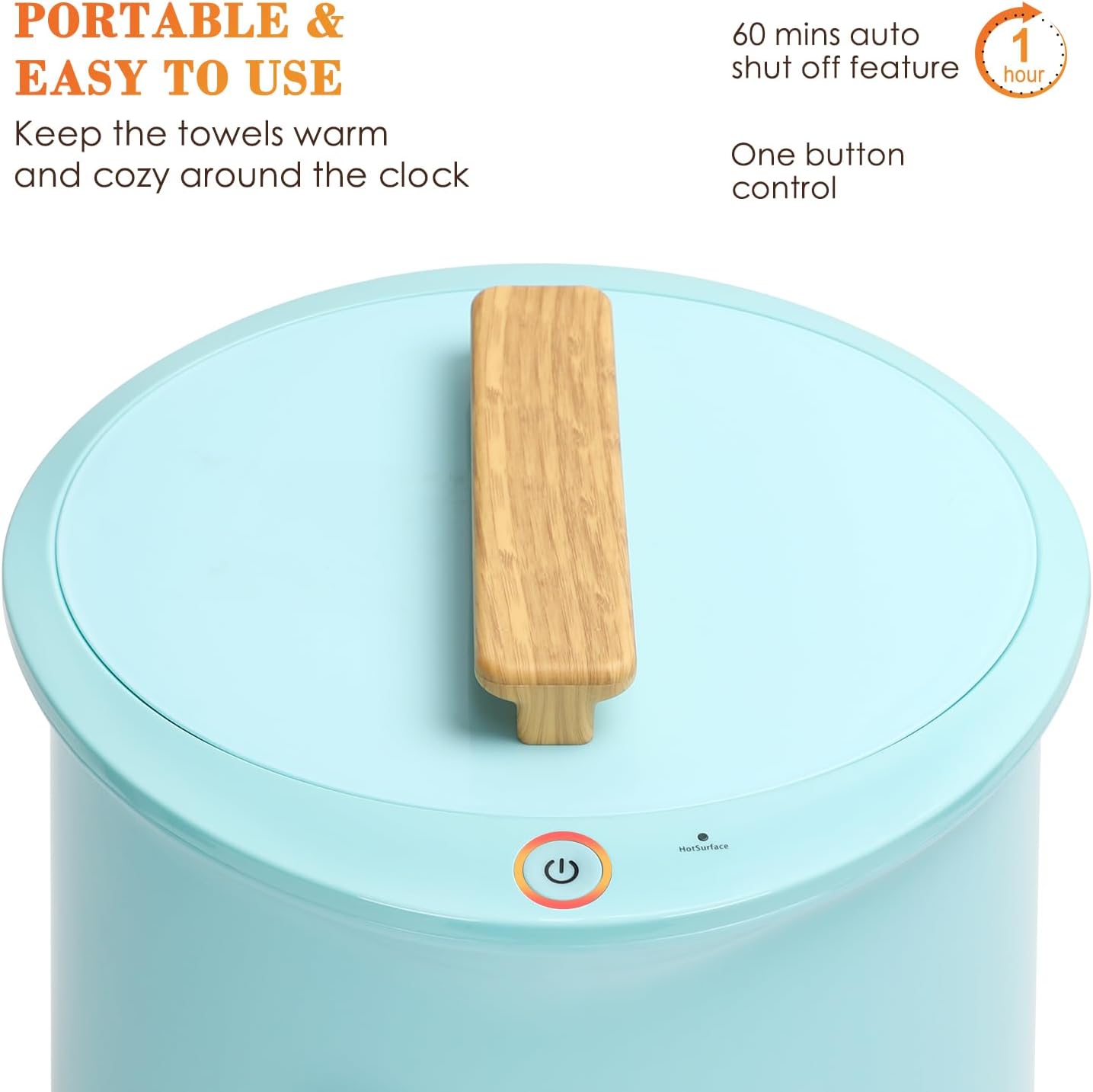 - Compact and Safe - Safe to use, compact for easy storage. The towel warmer is lightweight enough to move around the home; the bucket and lid separate for quick cleaning, while the round-shaped base is stylish and attractive; operates efficiently and quietly.