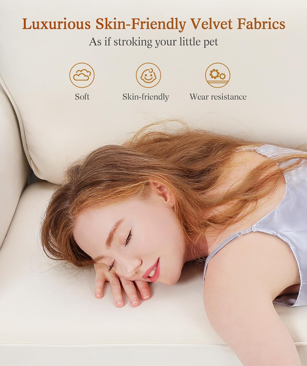 - No lo dudes, simplemente colapsa en el cómodo sofá de terciopelo blanco cuando estás cansado, y tu fatiga desaparecerá en poco tiempo. La densidad de relleno del sofá alcanza los 32D, que es muy esponjosa, libera uniformemente la presión y es suave pero no se pliega fácilmente. Cuando te enclavas en el sofá de dos plazas, se siente como estar en los brazos de un amante, cálido y cómodo, e incluso el ruido más fuerte se convertirá en una canción de cuna. El sofá beige es un gran regalo de Navidad para tu familia. Pueden tomar una siesta, ver películas, leer o jugar en el sofá de la sala de estar y disfrutar de su tiempo última intervensión.