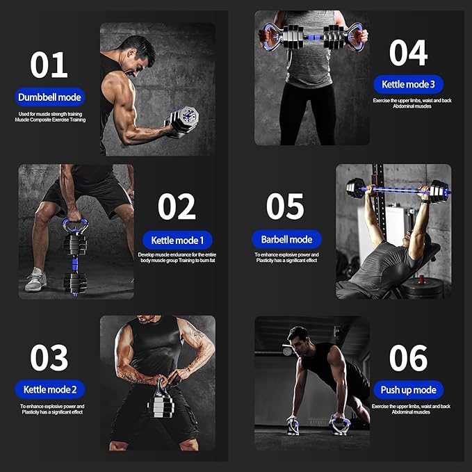 Nuestro juego de mancuernas multifuncional no sólo se puede utilizar como mancuernas, sino que también se siente cómodo en la mano, con revestimiento de goma antideslizante en los mangos de las mancuernas ajustables y superficie de espuma en las barras de conexión. Puede ajustar el peso de las mancuernas disminuyendo o aumentando el número de piezas de mancuernas para satisfacer sus necesidades de entrenamiento; además, hemos elegido excelentes materiales para hacer este juego de pesas, por lo que puede obtener una variedad de pesos con sólo poseer este juego de mancuernas, lo que ahorra mucho espacio.