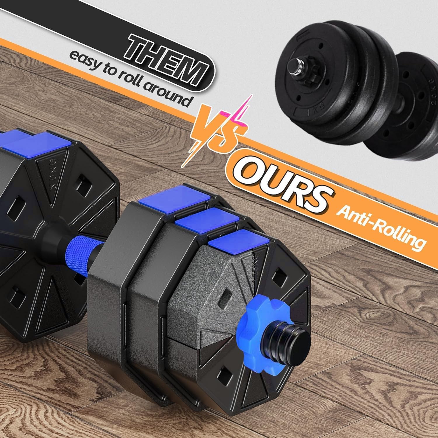 Puede ajustar el peso de las mancuernas añadiendo o quitando piezas de mancuerna para ayudarle a trabajar todo el cuerpo.