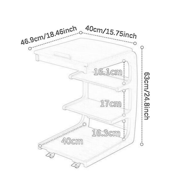 Producto de importación $$Descripción:$$ [Material de calidad]: Esta mesa auxiliar en forma de C para sofá está hecha de madera de calidad. Tiene una superficie lisa que es fácil de mantener y limpiar, y es resistente y resistente al desgaste para un uso a largo plazo.$$ [Diseño multifuncional]: Esta mesa auxiliar de madera presenta un diseño multifuncional de 4 capas. La bandeja se puede voltear y ajustar el ángulo, lo que la hace ideal para guardar diversos artículos, como utensilios y bocadillos, en la sala de estar o .$$ [Fácil de usar]: Esta mesita de noche móvil viene con ruedas giratorias de 360 grados, lo que facilita su movimiento. Sus bordes son suaves para un fácil agarre y también se puede usar como mesita de noche, práctica y conveniente.$$ [Amplia aplicación]: Esta mesa auxiliar para refrigerios es ideal para usar en hogares, salas de estar, dormitorios, cocinas y cafeterías, o para colocar junto a sofás en espacios pequeños.$$ [Tamaño apropiado]: Esta mesa de bandeja de 4 capas mide 46,9 cm de largo, 40 cm de ancho y 63 cm de alto, estructura compacta que es fácil de mover y puede agregar un toque elegante a su espacio.$$Especificación:$$ Material: Madera$$Carta del tamaño:$$ 46,9 cm x 40 cm x 63 cm/18,46 pulgadas x 15,75 pulgadas x 24,80 pulgadas$$El paquete incluye:$$ 1 mesa auxiliar$$Nota:$$ Permita pequeños errores de 1-2 cm debido a la medición manual.