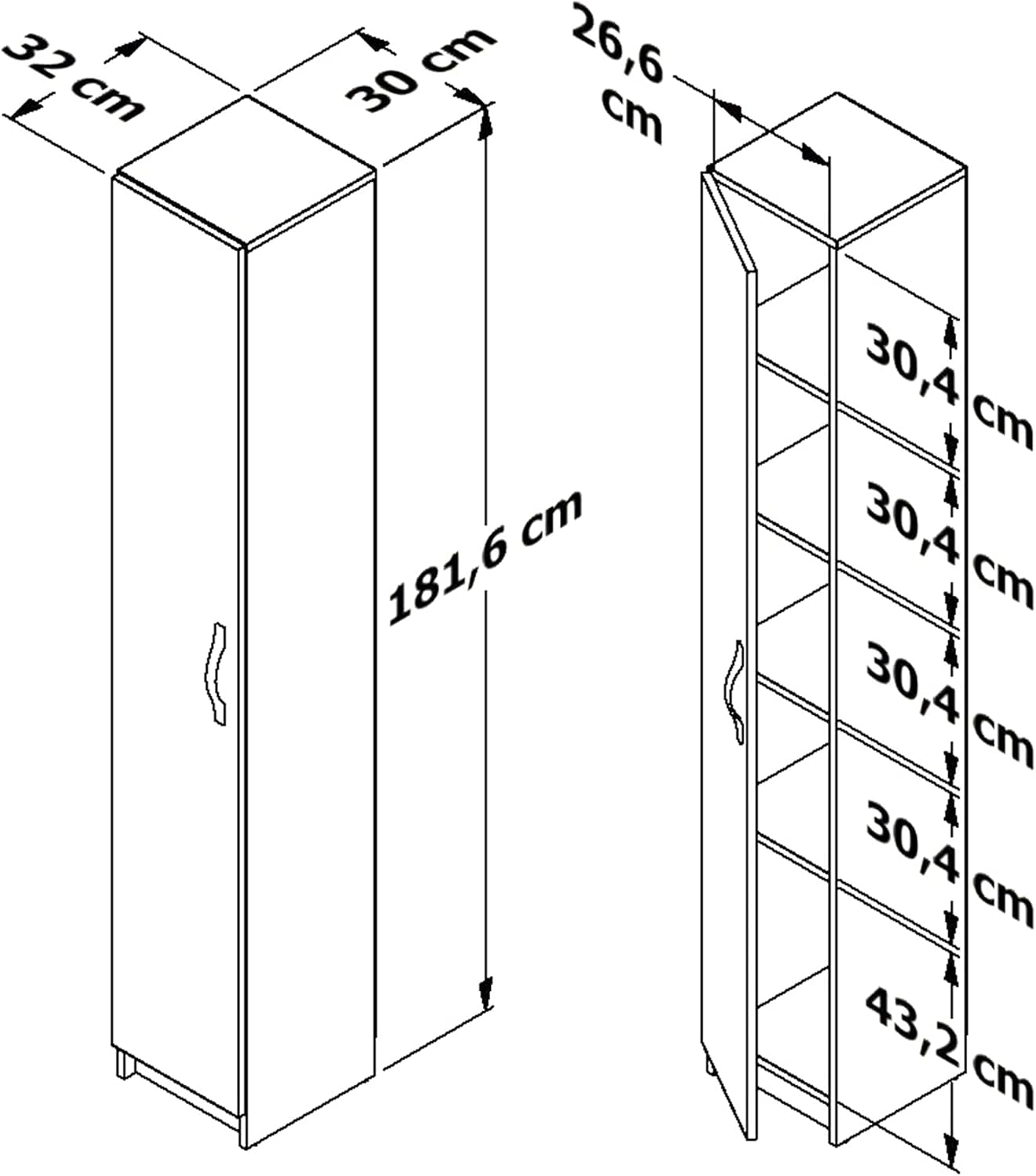 | Dimensiones del artículo (profundidad x ancho x alto) | 32prof. x 30an. x 181,6alt. centimeters |