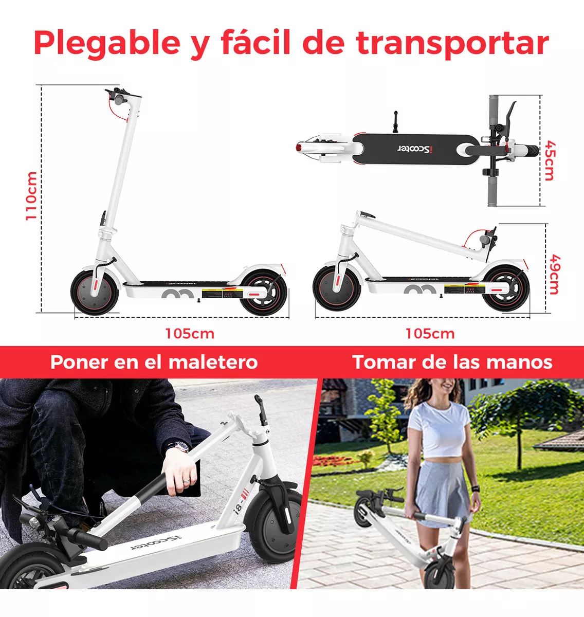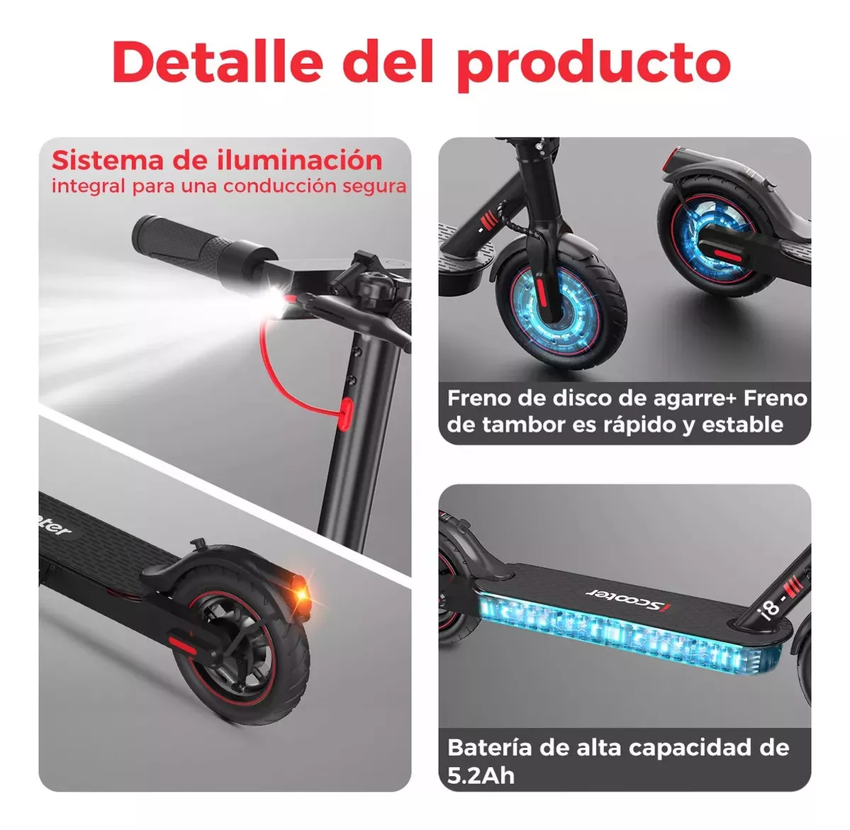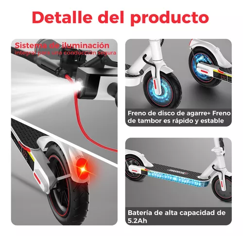 El scooter modelo i8 está diseñado con una robusta estructura de aleación de aluminio que puede soportar un peso igual o inferior a 80 kg.
