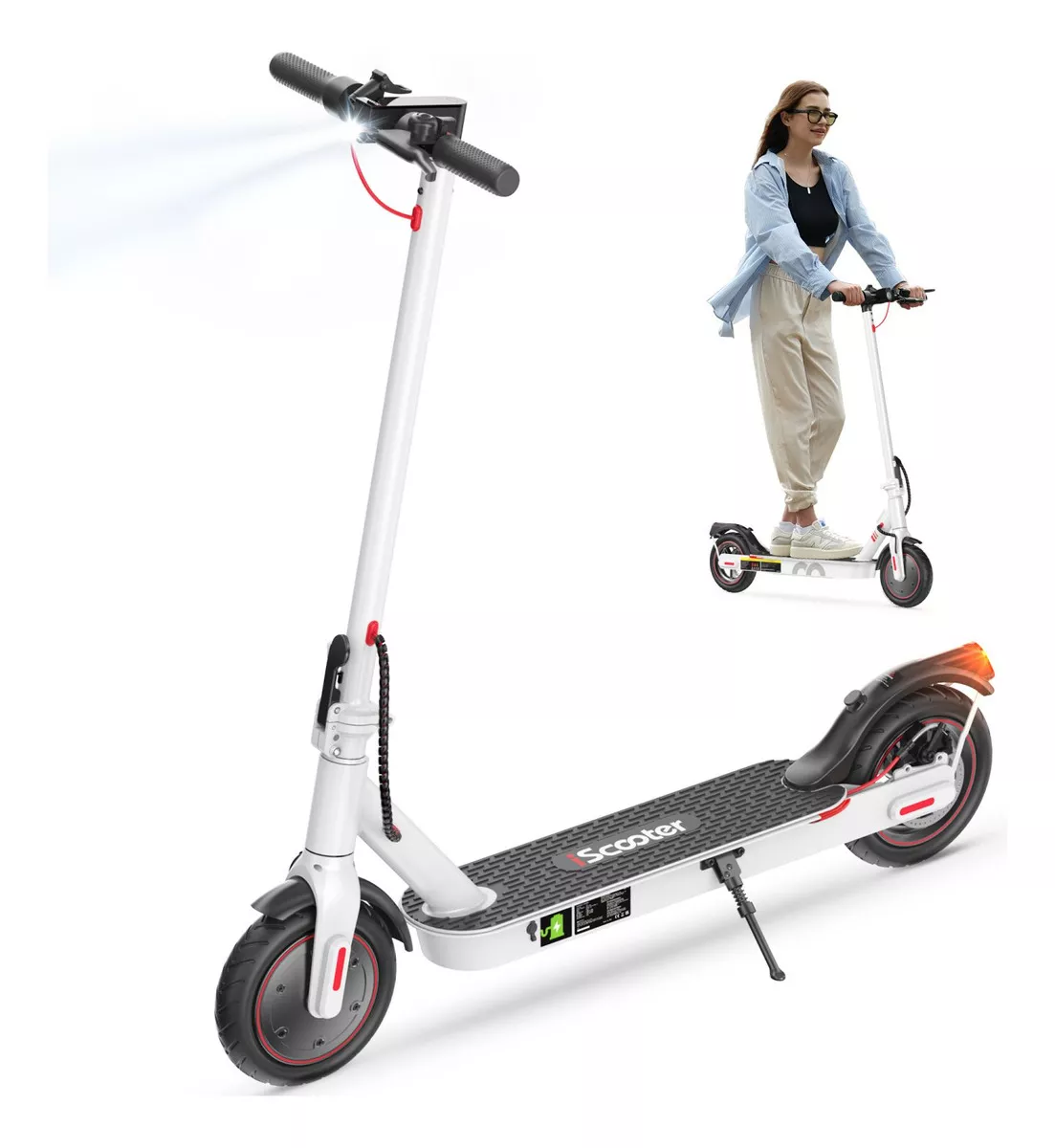 iScooter i8 is a powerful electric scooter for adults equipped with super-bright headlights and flash lights. rear brakes to improve safety. Furthermore, this electric scooter is also equipped with aDual disc braking system and an EABS regenerative antilock braking system.