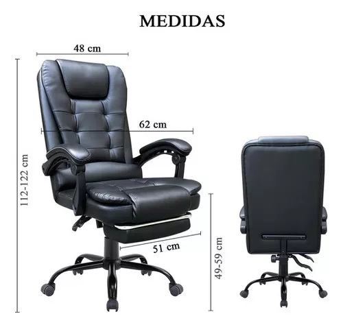 - Medidas del asiento: 51 cm de ancho, 49 cm de altura mínima desde el suelo, 59 cm de altura máxima desde el suelo y 50 cm de profundidad.