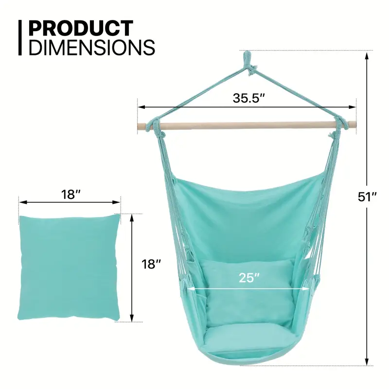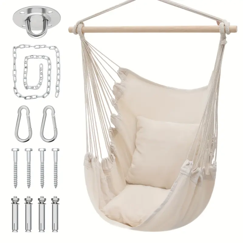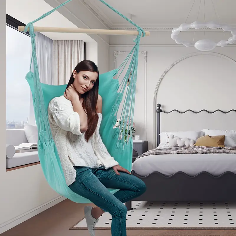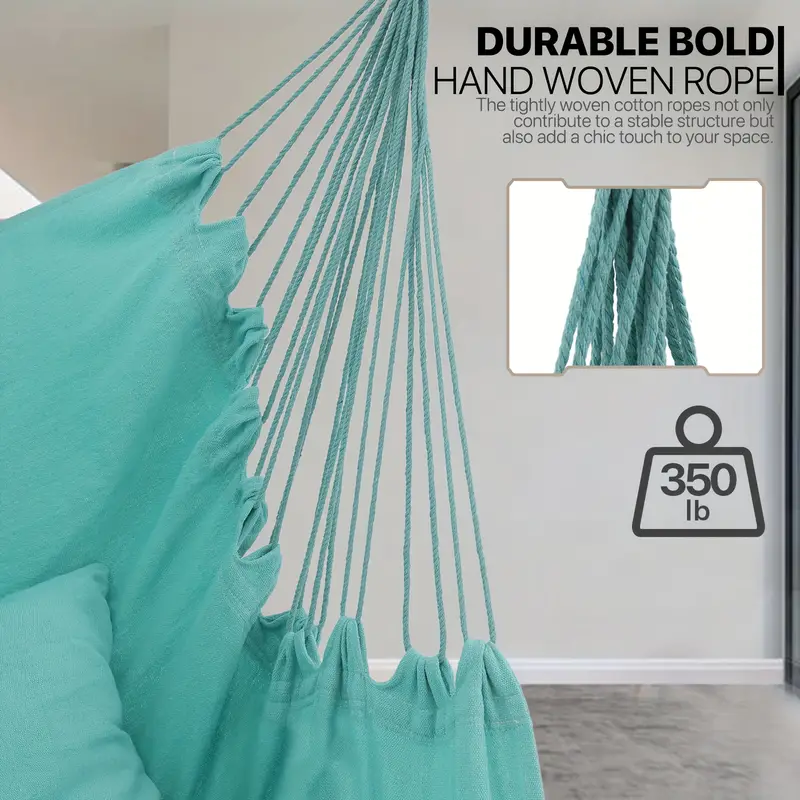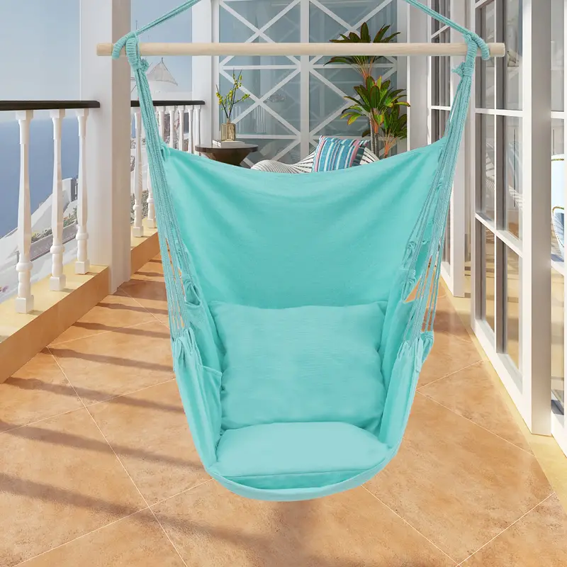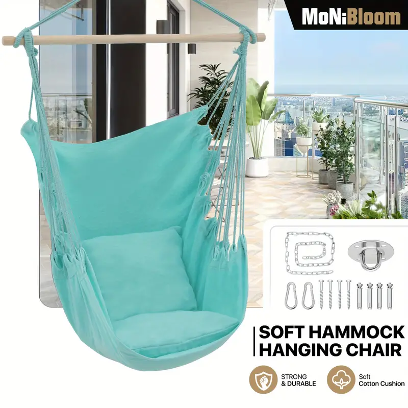 Silla Hamaca MoNiBloom Columpio de Cuerda Colgante con 2 Cojines, Silla Colgante de Macramé Boho Capacidad Máxima de 350 lb con Bolsillo, Kit de Hardware Incluido