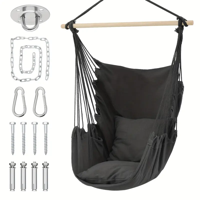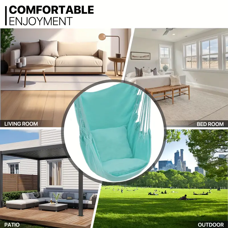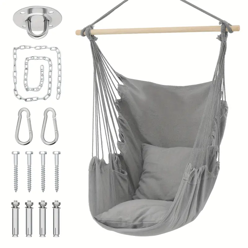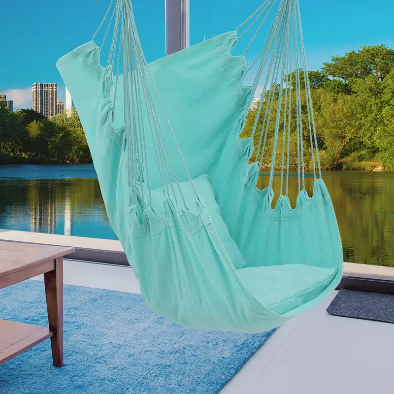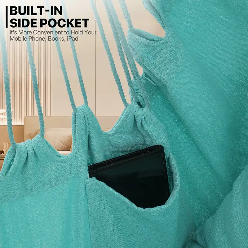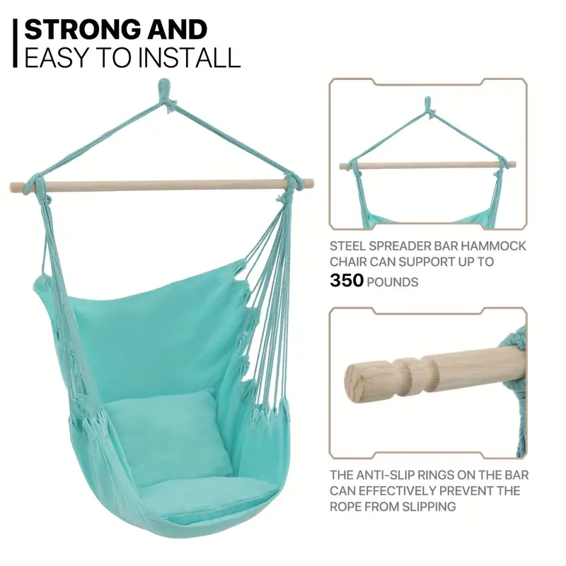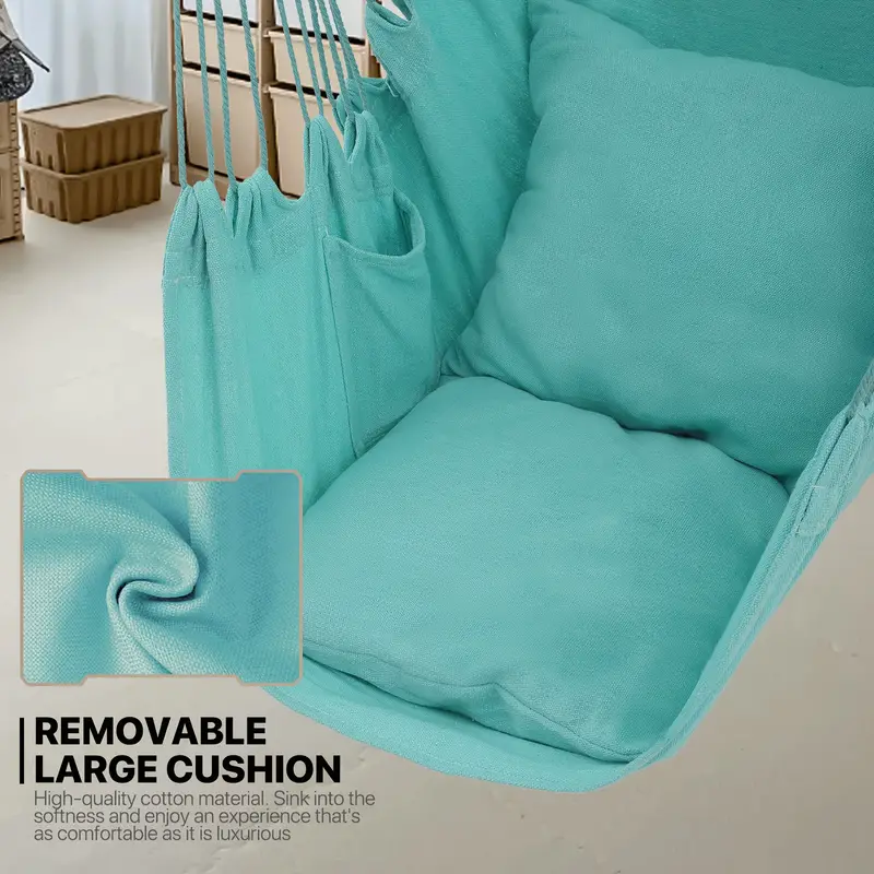 Silla Hamaca MoNiBloom Columpio de Cuerda Colgante con 2 Cojines, Silla Colgante de Macramé Boho Capacidad Máxima de 350 lb con Bolsillo, Kit de Hardware Incluido