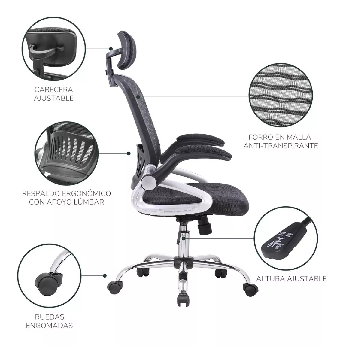Disfruta de esta cómoda silla, ideal para tu oficina o despacho. Gracias a su estructura firme, esta silla para home office te permite cuidar tu postura y evitar así los dolores de espalda baja o molestias musculares durante tus largas jornadas frente a la PC.