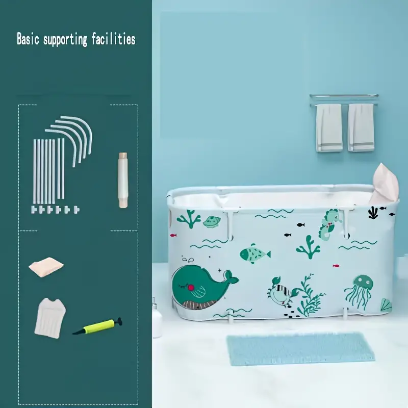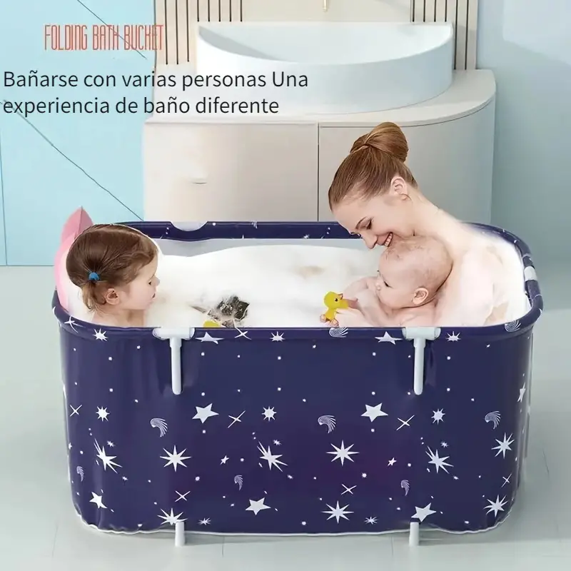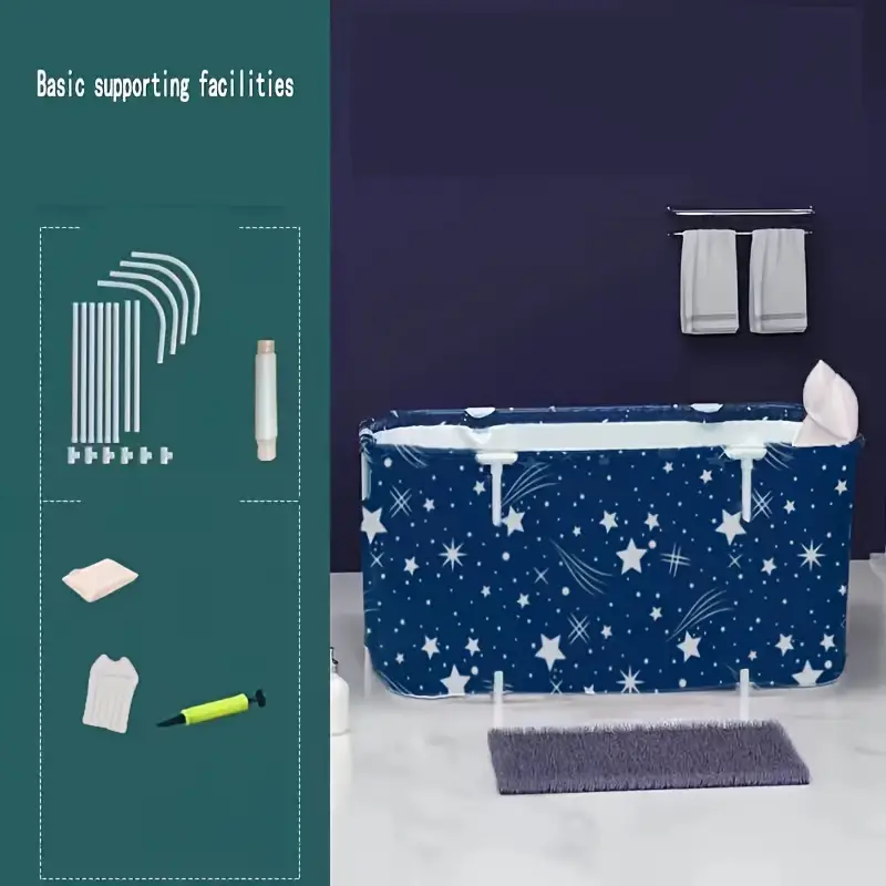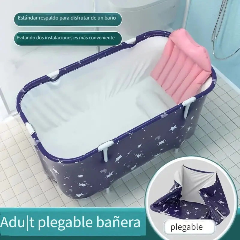 Tina de baño plegable que ahorra espacio, experiencia de spa, respaldo estándar, almacenamiento conveniente, con diseño de estrellas y luna, para baños pequeños y uso doméstico.
