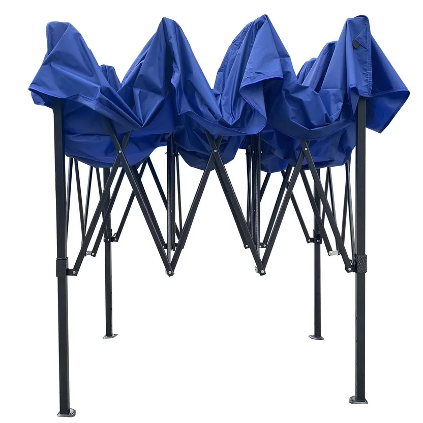 Posee un toldo de poliéster/PVC color azul, material especialmente diseñado para soportar la humedad y la exposición prolongada al sol, lo que la convierte en un elemento especial para tener en tu terraza por largo tiempo.