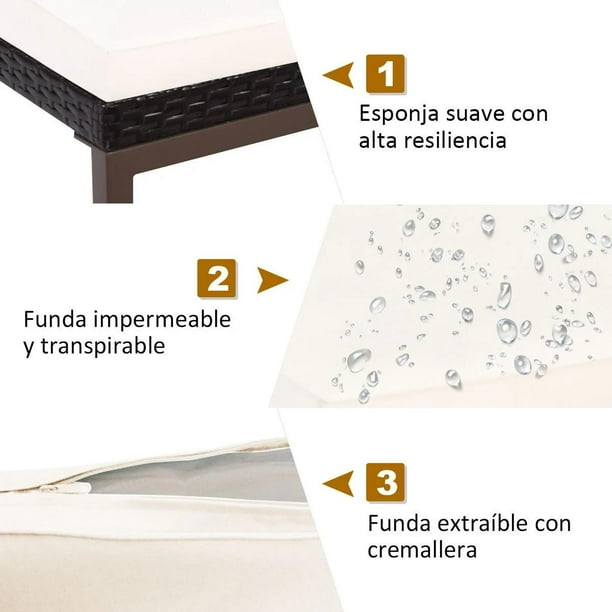 - Materiales de alta calidad y estructura estable: nuestra tumbona está hecha en ratán PE duradero y resistente a la intemperie. La estructura en acero resistente aguanta grandes cargas. Además, el revestimiento resistente al desgaste con la cremallera se puede quitar para limpiarlo.