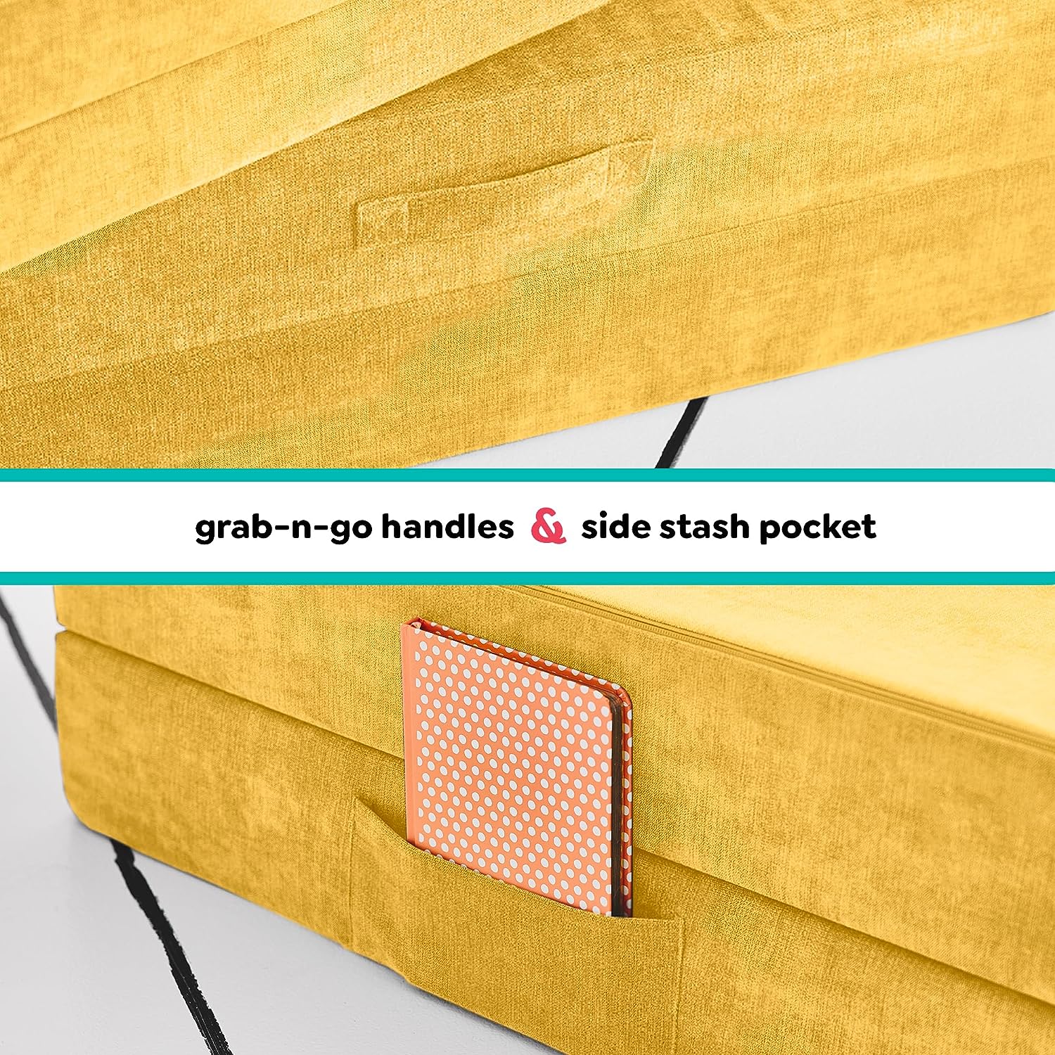 - Almacenar para el mañana: una vez que tus hijos y niños pequeños hayan jugado y puesto al contenido de sus corazones, este sofá plegable se forma en una variedad de configuraciones para un almacenamiento conveniente debajo de la cama, en la esquina o en el clóset