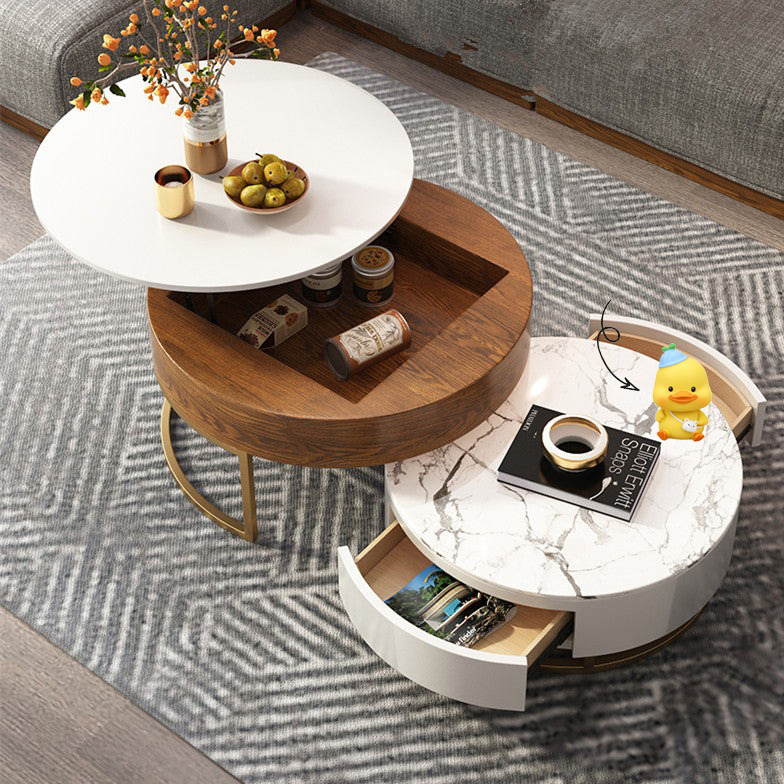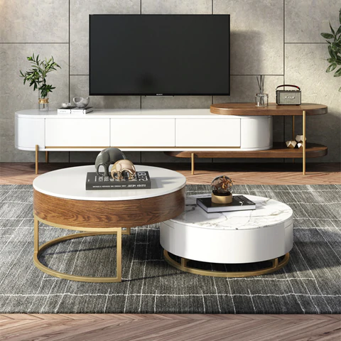 - Tablero de mesa grande hecho de madera fabricada y tablero de mesa pequeño hecho de mármol sintético, la pata de metal dorado garantiza una construcción robusta y un soporte estable.