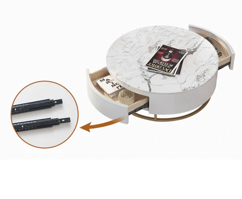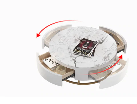- Viene con 2 cajones giratorios y almacenamiento oculto, esta mesa de centro ofrece un amplio espacio para guardar revistas, control remoto, juguetes o su pequeño secreto.