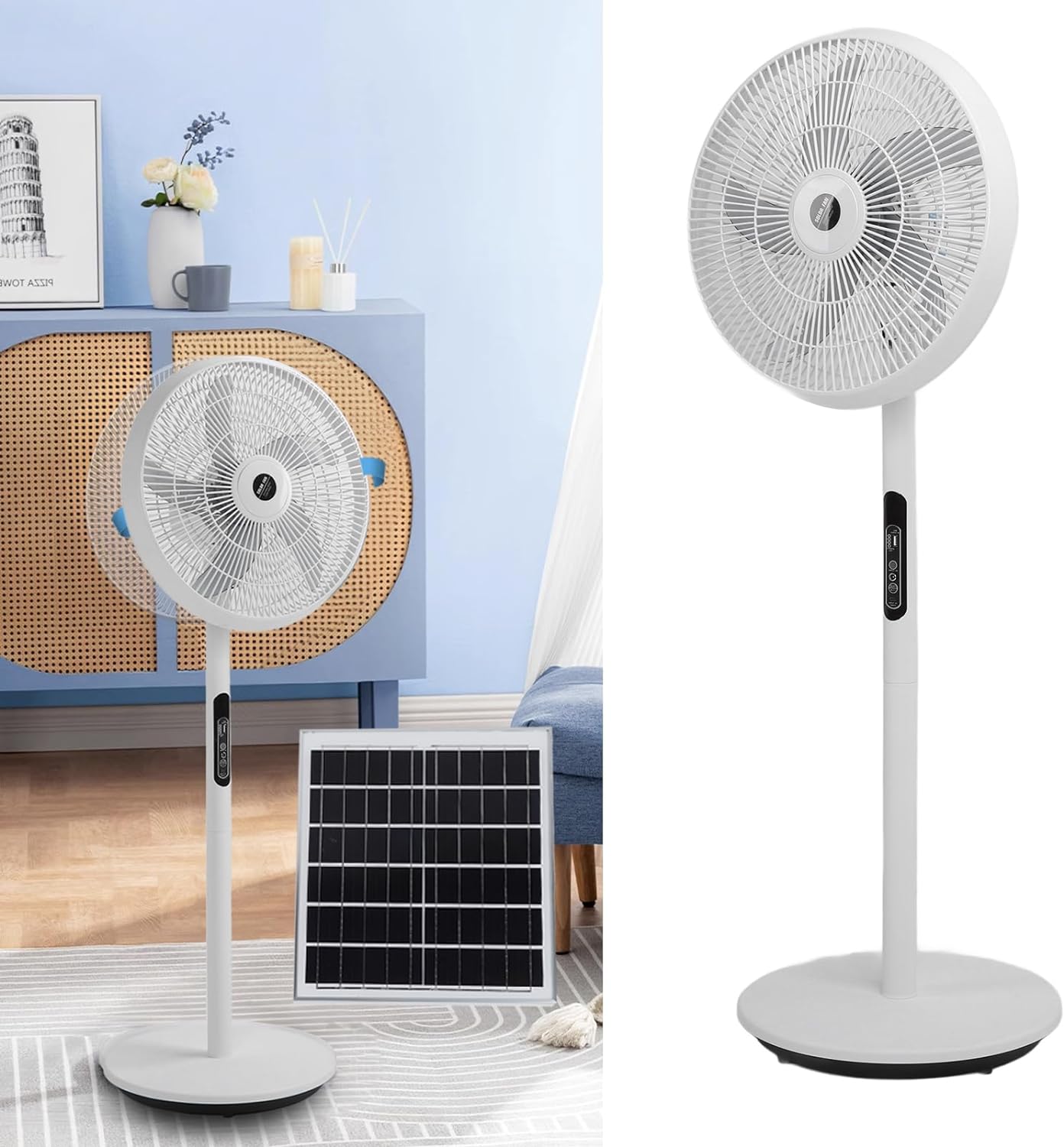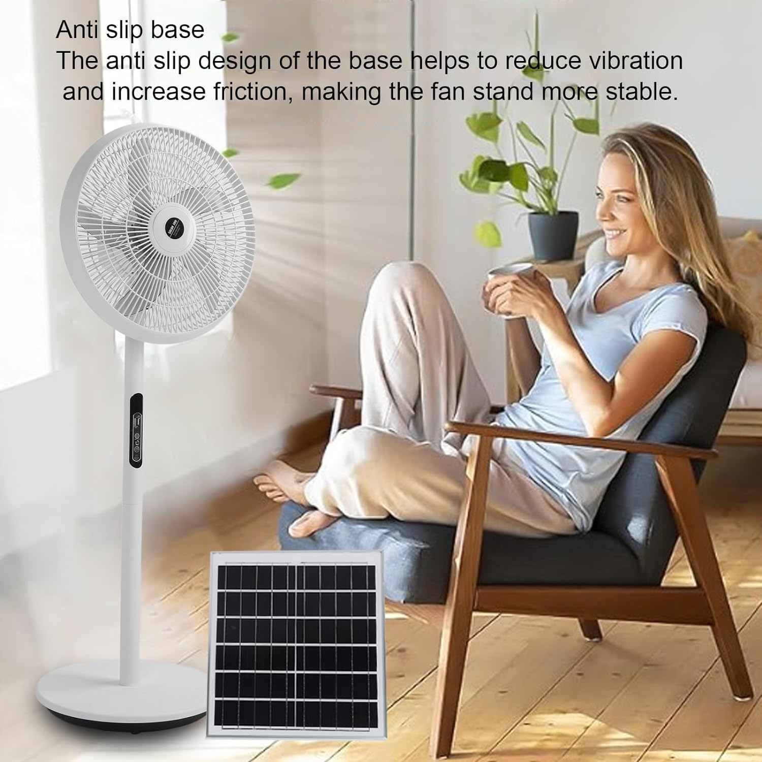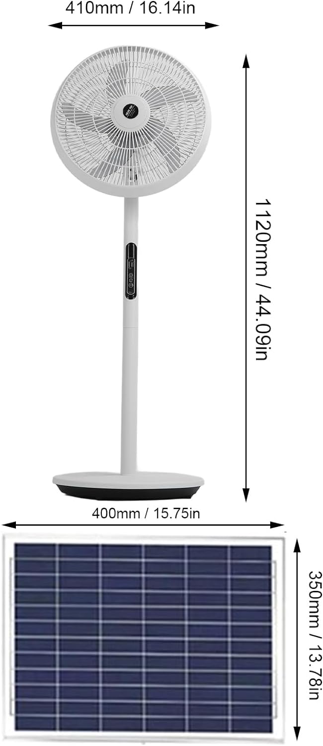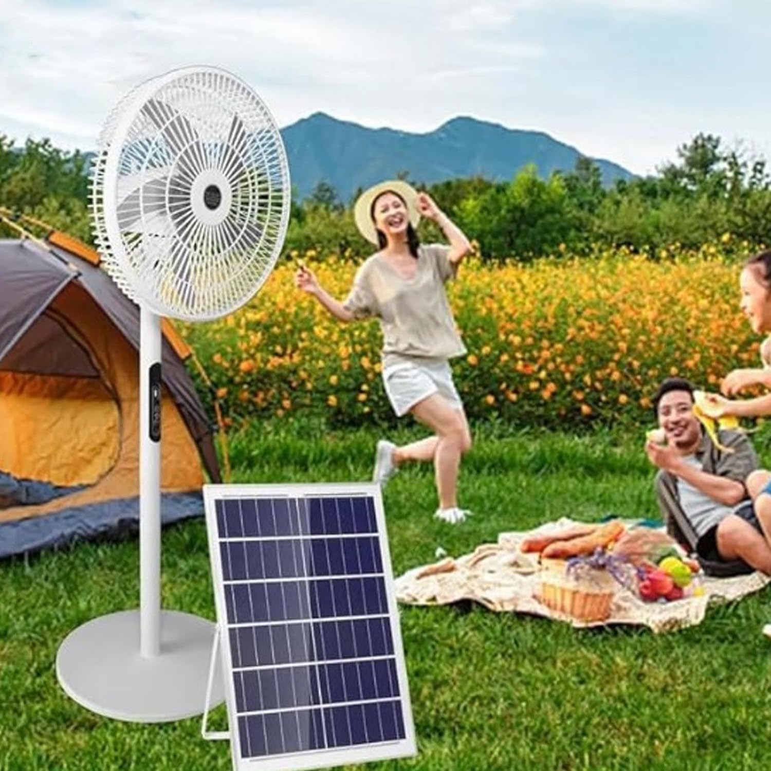 - 2 MÉTODOS DE CARGA: Se puede cargar mediante un panel solar o un cable de enchufe, la carga es más flexible, puede cargar el ventilador en cualquier momento, ya sea que esté al aire libre o en el interior.