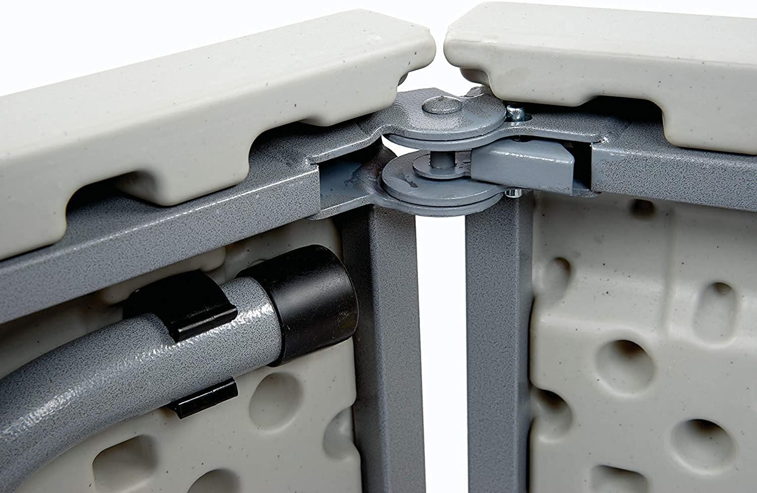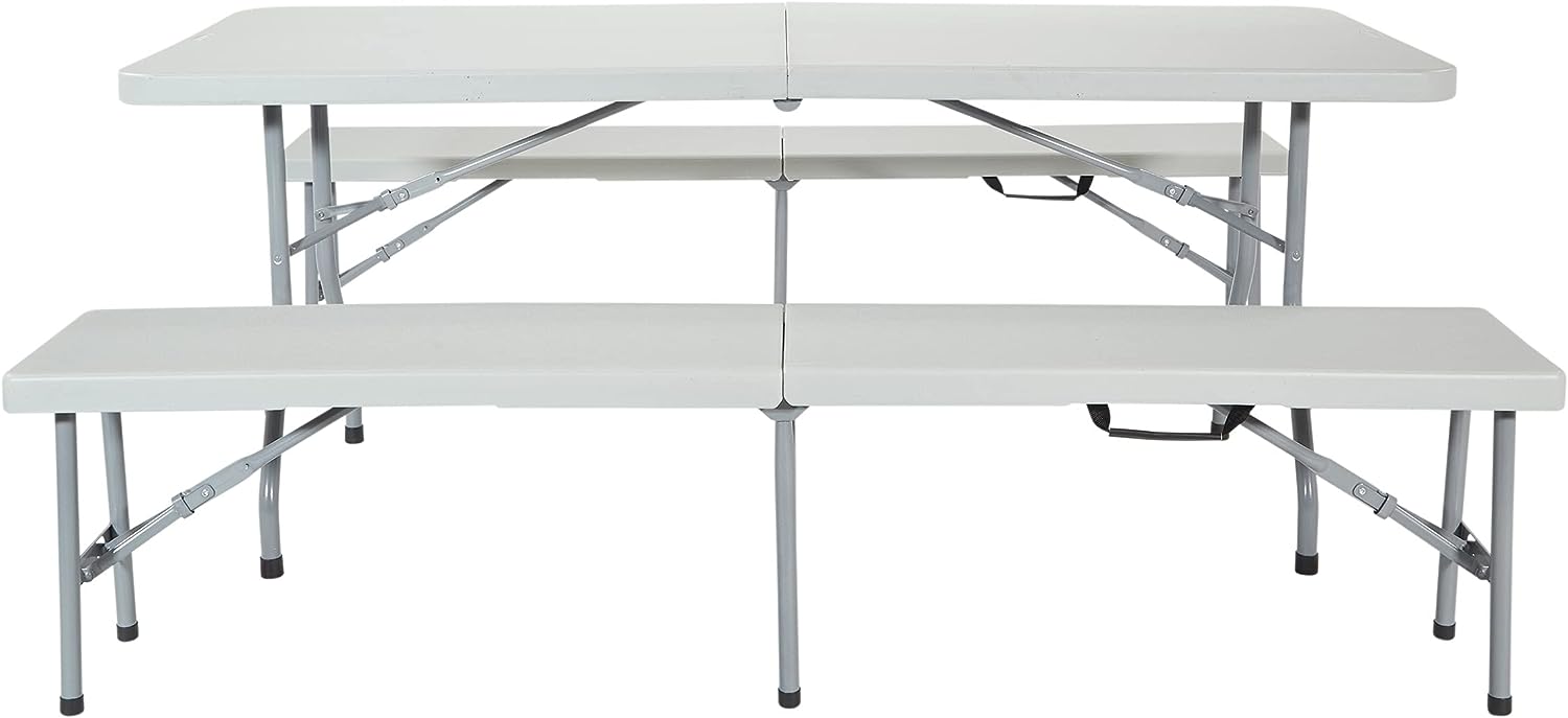 Calidad y resistencia: este juego de tres piezas de mesa y banco de 6 pies de largo está fabricado con material impermeable HDPE de alta capacidad, lo que garantiza durabilidad y estabilidad. La superficie mate antideslizante proporciona un agarre seguro, y el soporte de estructura triangular resistente y el marco de metal robusto ofrecen mayor resistencia. Las cerraduras seguras de estructura fija y el diseño de seguridad antivuelco mejoran aún más la estabilidad y la seguridad.