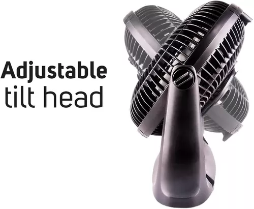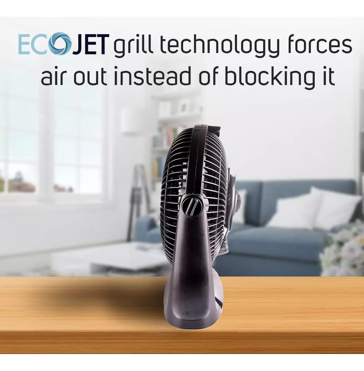 Ventilador de escritorio con tecnología ECOJET, rejillas plásticas aerodinámicas de 10 pulgadas que impulsan el aire eficientemente. ECOJET proporciona hasta un 30% más de aire, con menos ruido y una mayor eficiencia energética. Diseño versátil y funcional que permite su uso tanto en escritorio como en pared, incluye 3 velocidades y 6 aspas aerodinámicas. Adecuado para climas templados y tropicales. Cuenta con un práctico sistema para enrollar el cable y un cabezal de inclinación ajustable para dirigir el flujo de aire.