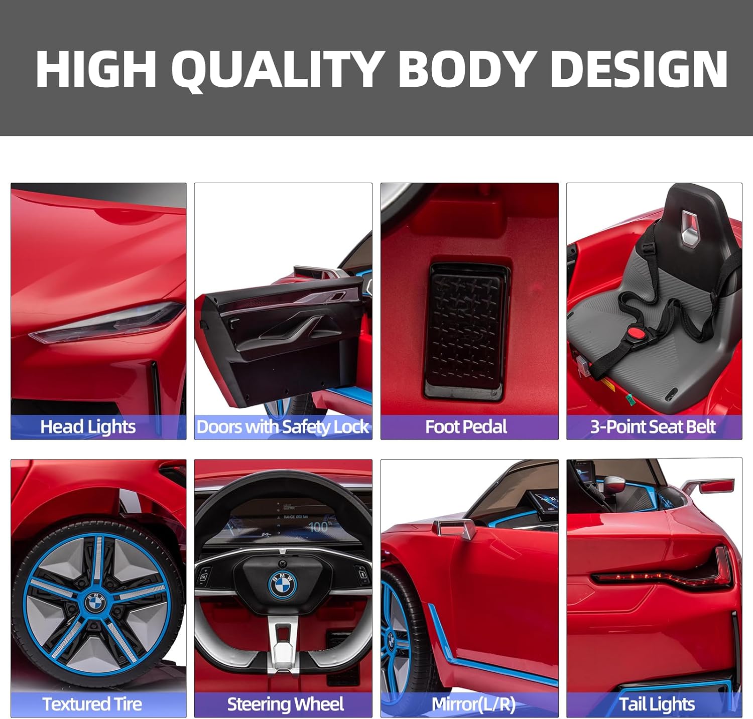 - 🎁🚙【Garantía de seguridad】: este coche eléctrico bmw i4 para niños está hecho de material de polipropileno de alta calidad apto para niños, asegurando una textura premium y una mayor resistencia del cuerpo. La tecnología de arranque lento y freno permite un arranque seguro y suave sin sorprender a los niños. El asiento de 12.5 pulgadas de ancho está equipado con un cinturón de seguridad de 3 puntos, lo que garantiza la máxima seguridad durante el viaje. Además, las ruedas resistentes al desgaste con un sistema de suspensión permiten una conducción estable en cualquier tipo de superficie de carretera.